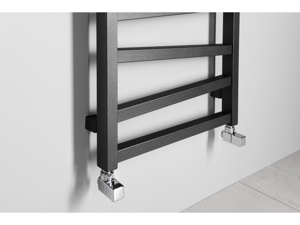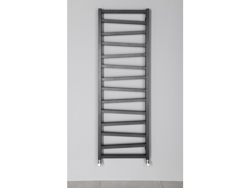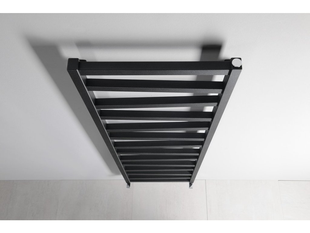 Otopné těleso s různoběžnými středovými trubkami podtrhne design koupelny. Možná kombinace ústředního a elektrického vytápění. V nabídce v barvách bílá, strukturální antracit a černá mat.