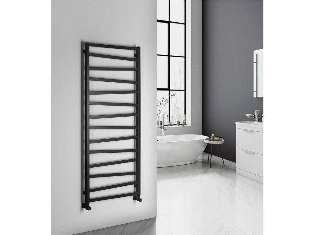 Otopné těleso s různoběžnými středovými trubkami podtrhne design koupelny. Možná kombinace ústředního a elektrického vytápění. V nabídce v barvách bílá, strukturální antracit a černá mat.