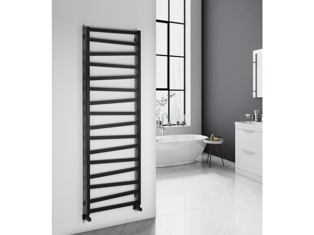 Otopné těleso s různoběžnými středovými trubkami podtrhne design koupelny. Možná kombinace ústředního a elektrického vytápění. V nabídce v barvách bílá, strukturální antracit a černá mat.