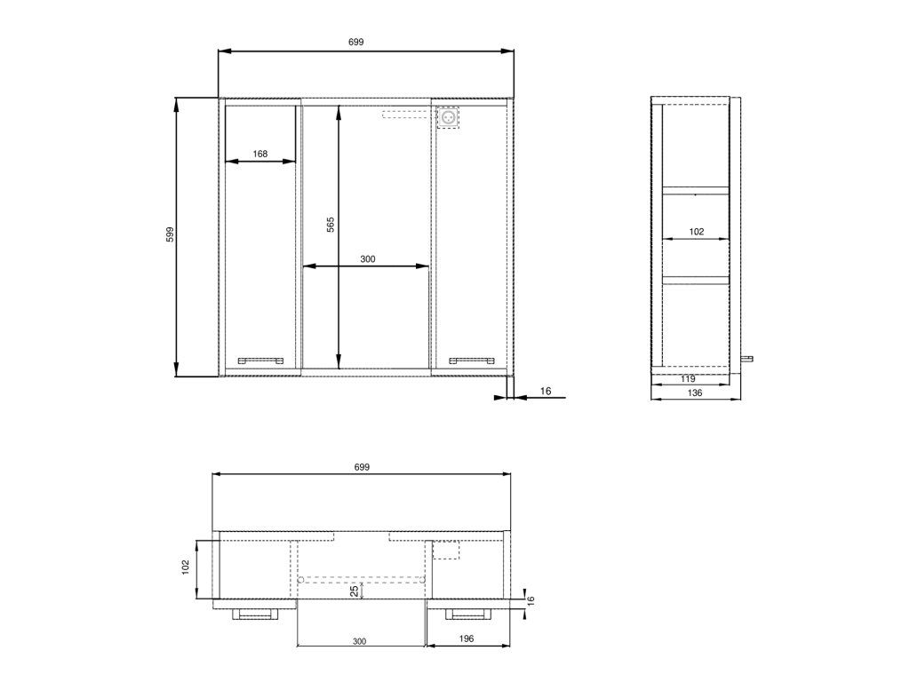 ZOJA/KERAMIA FRESH STRIP galerka s LED osvětlením, 70x60x14cm, dub platin