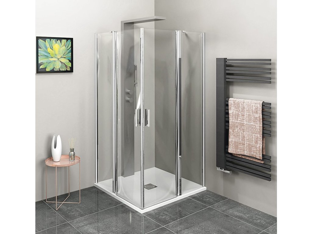 - Skládací dveře 700 až 900 mm v provedení levá a pravá lze instalovat do niky nebo v kombinaci L/R vytvořit čtvercovou nebo obdélníkovou zástěnu s rohovým vstupem