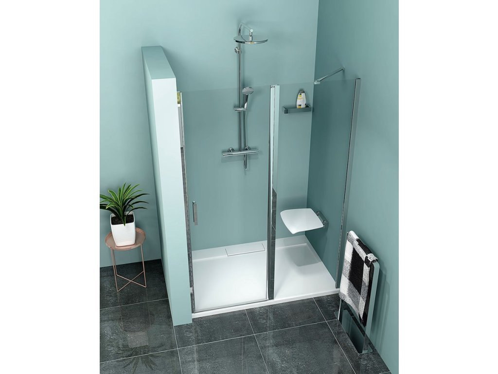 - Skládací dveře 700 až 900 mm v provedení levá a pravá lze instalovat do niky nebo v kombinaci L/R vytvořit čtvercovou nebo obdélníkovou zástěnu s rohovým vstupem