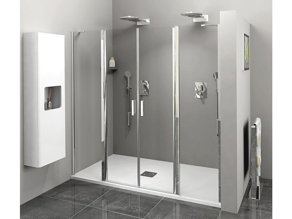 - Skládací dveře 700 až 900 mm v provedení levá a pravá lze instalovat do niky nebo v kombinaci L/R vytvořit čtvercovou nebo obdélníkovou zástěnu s rohovým vstupem