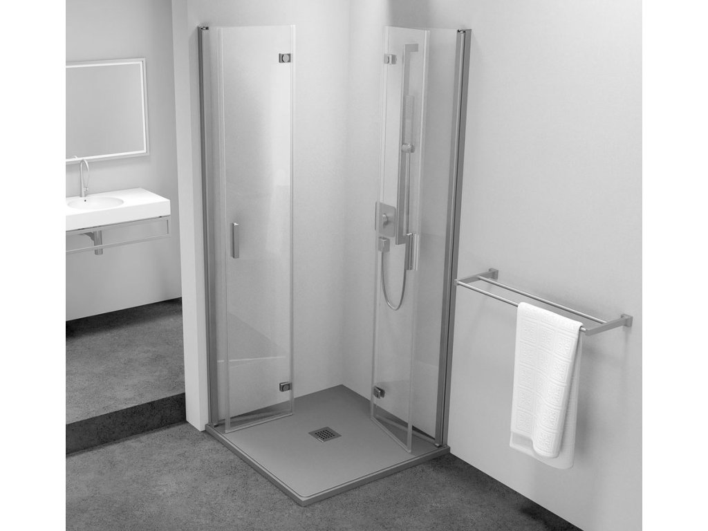 - Skládací dveře 700 až 900 mm v provedení levá a pravá lze instalovat do niky nebo v kombinaci L/R vytvořit čtvercovou nebo obdélníkovou zástěnu s rohovým vstupem