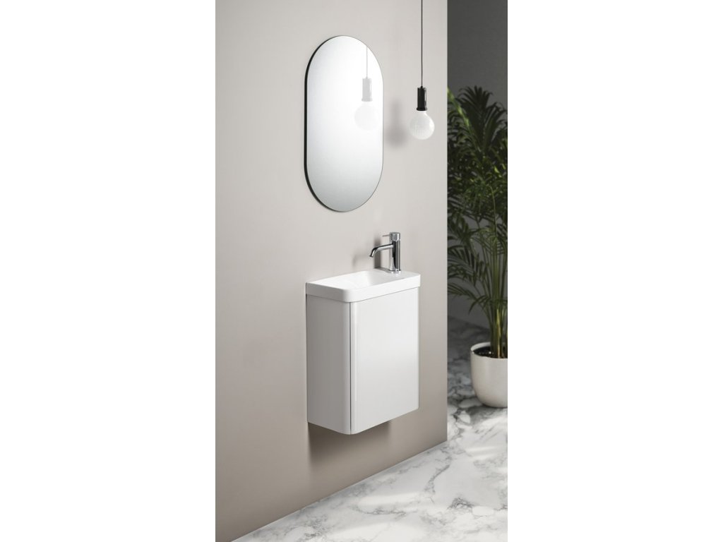 Série koupelnového nábytku ZORBA je navržena pro maximální využití prostoru v menších koupelnách a na toaletách. Skříňka se zaoblenými boky a dvířky zaujme svým designem a zároveň nabízí praktický úložný prostor pro čisticí prostředky nebo toaletní papír. Otevírá se pomocí systému TIP-ON, díky němuž čelní plocha zůstává čistá a elegantní.