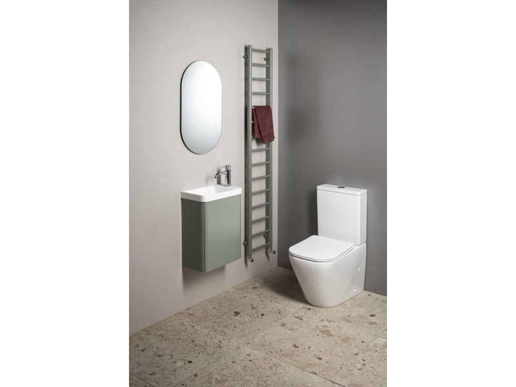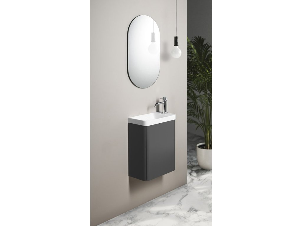 Série koupelnového nábytku ZORBA je navržena pro maximální využití prostoru v menších koupelnách a na toaletách. Skříňka se zaoblenými boky a dvířky zaujme svým designem a zároveň nabízí praktický úložný prostor pro čisticí prostředky nebo toaletní papír. Otevírá se pomocí systému TIP-ON, díky němuž čelní plocha zůstává čistá a elegantní.